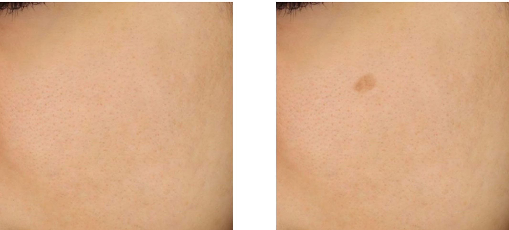 Figure 2. Image of skin free of age spots (left) and skin with visible age spots on surface (right)