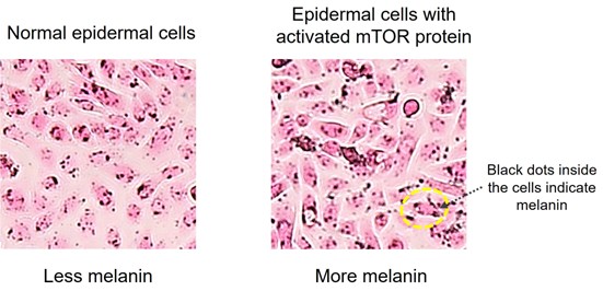 Figure 5. Melanin deposition occurs more easily in epidermal cells as a result of “mTOR protein” activation