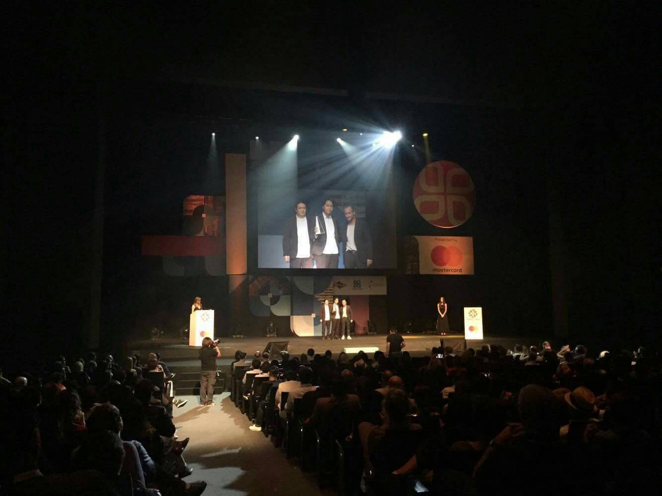 「SPIKES ASIA 2016」授賞式の様子 資生堂宣伝・デザイン部 矢村 智明(中央) WATTS OF TOKYO 仁科 健治氏(左)