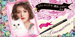 ◆「ラインマニア」は、ラインをナチュラルに描くだけで、瞳そのものを大きく見せるジェルライナー。ふんわりとしたツヤで目もとをうるんだように見せるピンクパールと、ラインを際立たせるブラックパールの効果で大きな黒目の印象に。
