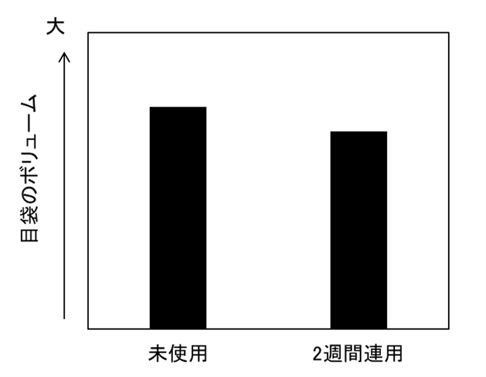「Second Skin」技術は、皮ふ上で柔軟性の高い収縮膜を形成し、その膜が収縮する際に生じる張力を利用して皮ふの膨らんだ部分を押し込むテクノロジーです(図2)。これまでは日中に目袋を目立たなくする目的の使用や、2か月間毎日使用し続けることで膜を取り除いた後の素肌の目袋のボリュームを改善するといった効果が見いだされていましたが、今回はさらに収縮力を向上させ、2週間で効果が発現する基剤が開発されました(図3)。