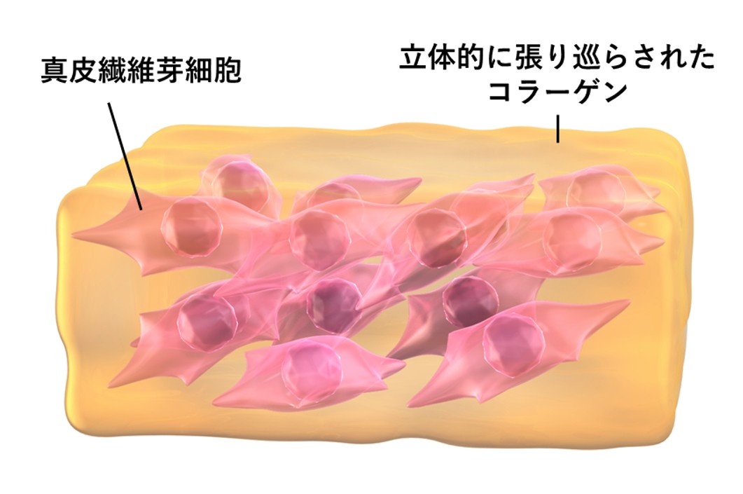 この反応は、皮ふが傷を治癒するために真皮を再構築する過程に類似しており、微弱な圧縮刺激が線維芽細胞に働きかけ、コラーゲンを産生し、受けた力に応じて自身の環境を再構築し、より最適な状態へ導いていることが示唆されました。