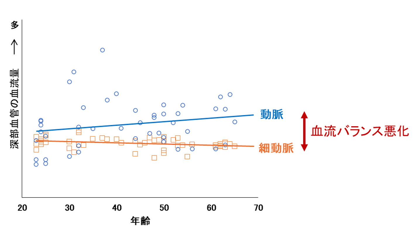 加齢によって深部血管の血流バランスが偏る