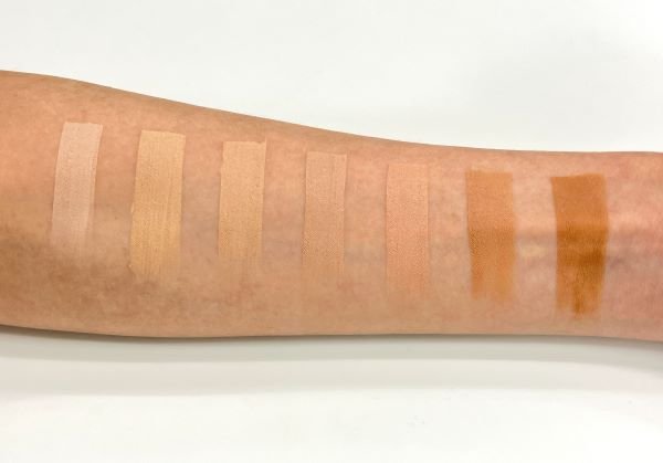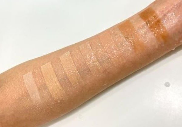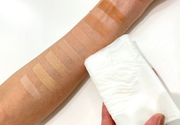 何色か実際に肌につけて、どの色が最も自然になじむかを確認します。